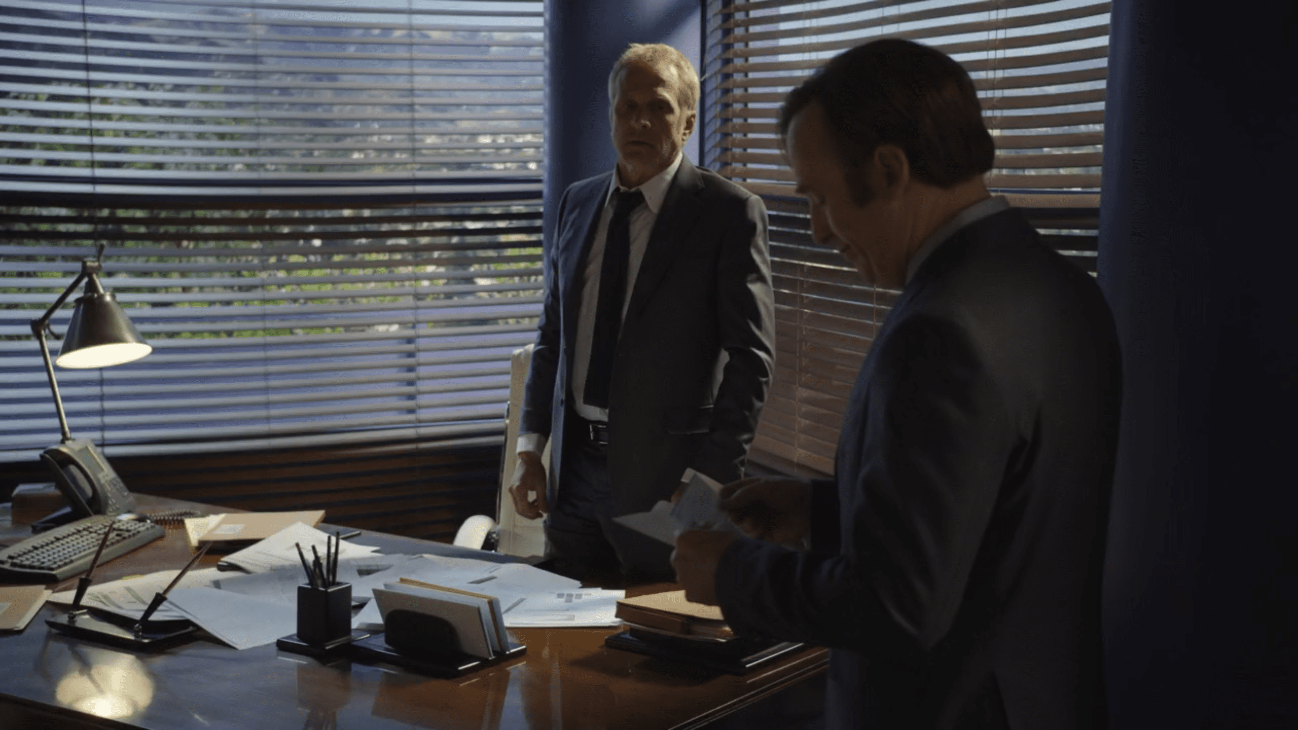 Jeśli mielibyśmy mówić o narodzinach Saula, to właśnie teraz nadszedł na to czas. To nie jest już metoda Slippin’ Jimmy’ego, która potrafi wykaraskać się z każdej sytuacji. To metoda Saula Goodmana, z którym się nie zadziera. W scenie tej najważniejsze wydaje się to, że podobny obrazek widzieliśmy w 1. sezonie BCS, kiedy Jimmy został wywieziony na pustynię wraz z Calem i Larsem, którzy narazili się Tuco. Wówczas prawnik aż do samego końca przekonywał Salamancę, że robi błąd, że można się dogadać, że obejdzie się bez przelewu krwi. Manipulował, ale dla dobra sprawy. W istocie pomógł tym chłopakom i wyciągnął ich z grobu. Tutaj Jimmy z początku próbuje, jak zawsze, racjonalizować, pogodzić obie strony, ale ewidentnie bez przekonania – bo tak naprawdę chce im dopiec.