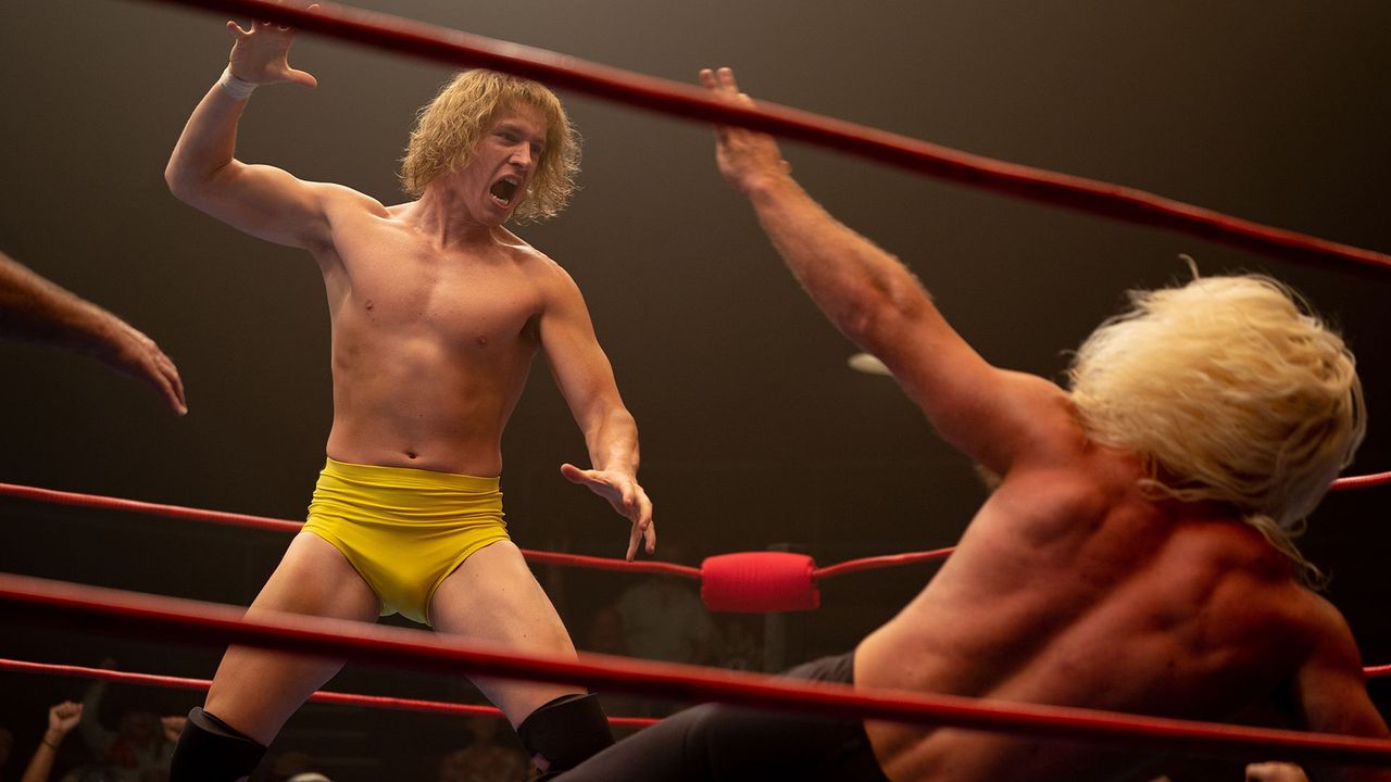 Jeśli nie znacie historii wrestlingowej rodziny, nie zmieniajcie tego przed seansem, by dać zaskoczyć się kilku solidnym plot twistom. Przed obejrzeniem filmu nie wiedziałem nawet, jak wyglądają realni bracia Von Erich. Najlepszymi decyzjami castingowymi przez pryzmat fizycznego podobieństwa są zdecydowanie Harris Dickinson w roli Davida oraz Stanley Simons jako Mike. O tym drugim nieczęsto mówi się przy okazji promocji filmu czy nawet w jego opisach. To najmniej doświadczony aktor z gwiazdorskiej obsady, jego pomijanie wydaje mi się jednak totalnie nieodpowiednie. Postać Mike’a jest równie istotna, co reszty braci. Aktor ma w sobie odpowiednią lekkość i frywolność, dzięki którym doskonale sprawdza się w roli najmłodszego, nieco naiwnego brata, który ma jeszcze kilka ostatnich chwil, by patrzeć na świat przez różowe okulary. Zamiast ćwiczyć na prywatnym ringu ojca w ogrodzie, woli spędzać czas na garażowych próbach licealnego zespołu. Mimo że gra na kilku instrumentach i dostaje propozycję koncertu, to odmienne zainteresowanie postrzegane jest wyłącznie jako faza, która niedługo przeminie. Jedno słowo ojca i Mike przywdzieje trykot zapaśniczy.