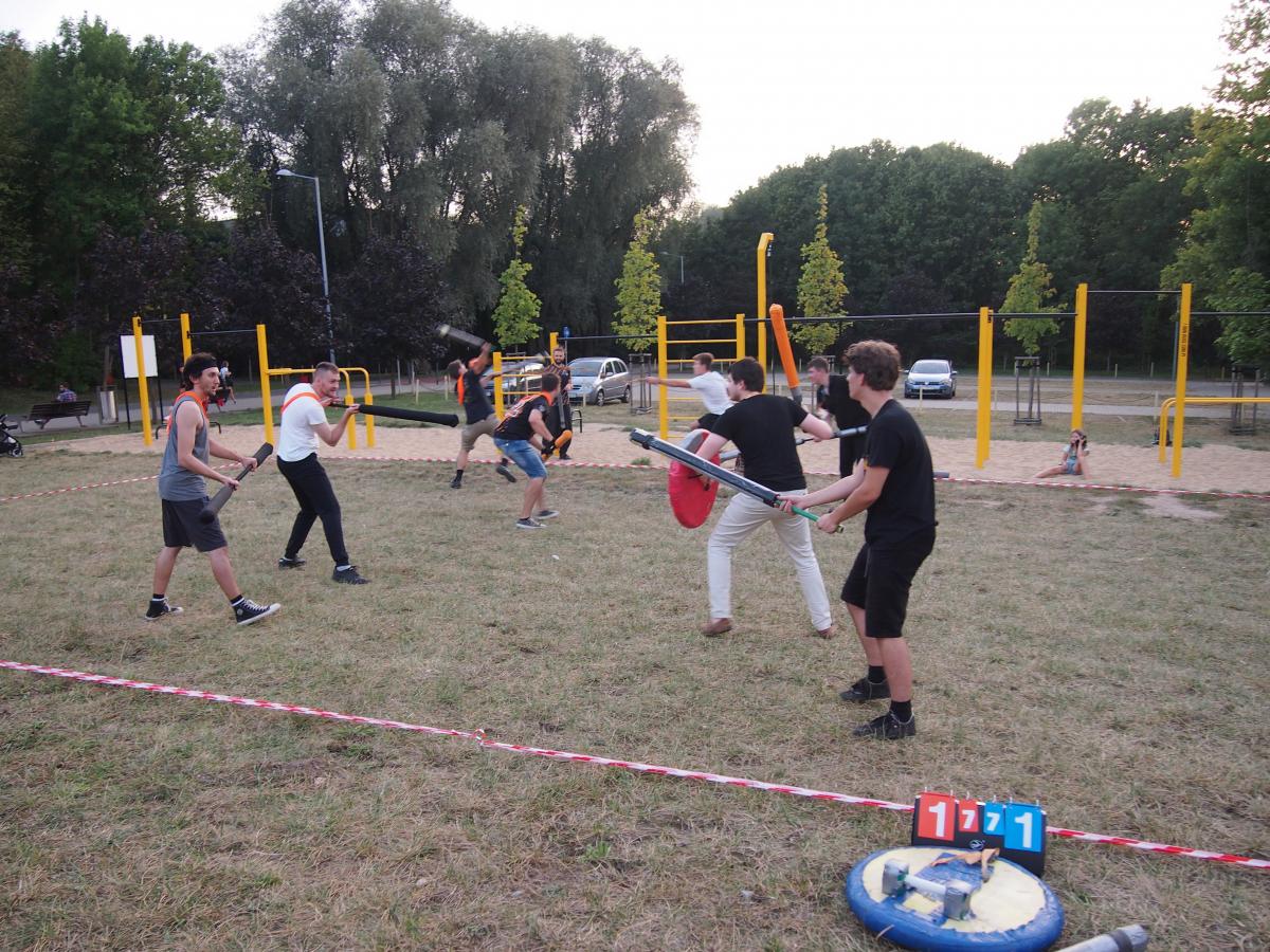 Jednak nie tylko historyczne atrakcje czekały na nas na zewnątrz – bliżej wejścia na teren Wydziału Filologicznego znajdował się m.in. Wiedźmiński Kasztel i mandaloriańska kantyna Manda `Yaim. Osoby zainteresowane polepszeniem swoich zdolności manualnych mogły natomiast wziąć udział w warsztatach kuglarskich, organizowanych przez Duet WhiteNight, który po zapadnięciu zmroku uraczył uczestników festiwalu pokazem Fire Show. I choć w tym roku zabrakło quadballa, konwentowicze wciąż mogli wziąć udział w nietypowych aktywnościach fizycznych – na Kapitularz zawitała bowiem trójmiejska grupa Dziki, będąca drużyną Juggera – sportu inspirowanego filmem Krew bohaterów. Sam Jugger zyskuje na popularności, a w najbliższym czasie ma zostać uformowana łódzka drużyna.