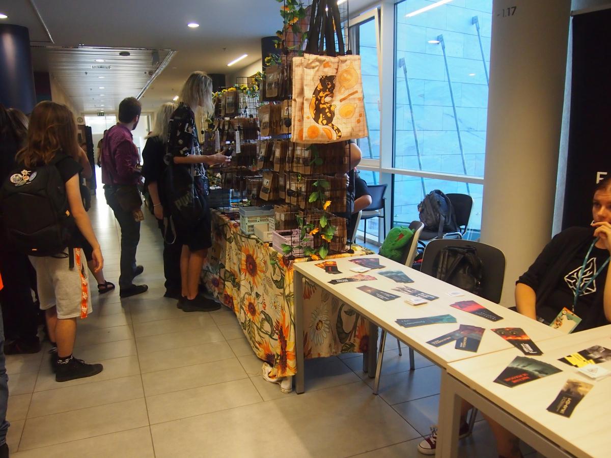Wśród nich znaleźli się zarówno twórcy z Sinister Project, jak i założyciel wydawnictwa Hm, czy reprezentująca łódzkie podwórko debiutująca pisarka Ewa Majkusiak, której Zbrodnia na progu została w tym roku wydana przez wydawnictwo Dlaczemu. Prócz tego konwentowicze mogli podziwiać i nabywać liczne przykłady rękodzieła, wystawiane na niezliczonych stoiskach. Choćbym chciał, nie byłbym w stanie wymienić nazwisk wszystkich interesujących gości i nazw poszczególnych stoisk.