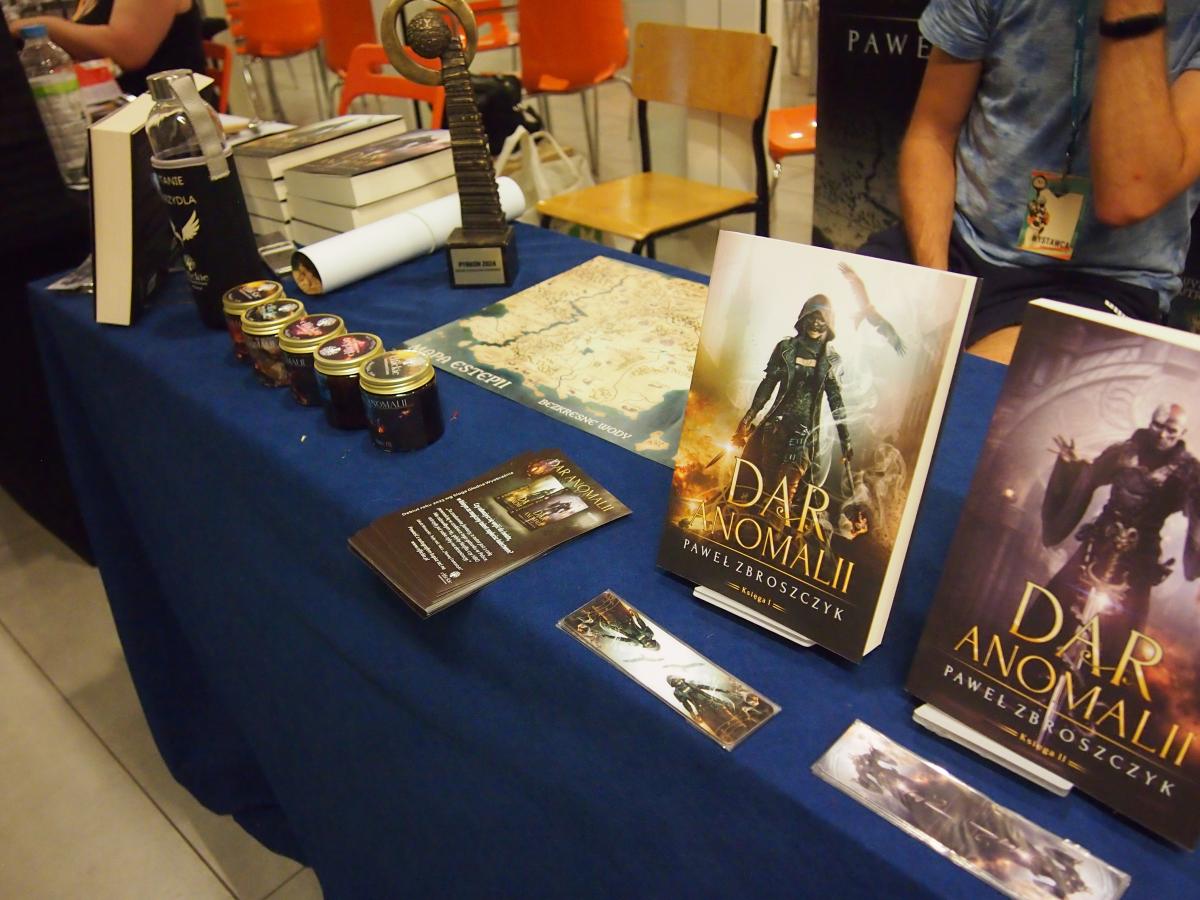 Wielu pisarzy prezentowało swoje dzieła na stoiskach własnych lub organizowanych przez publikujące je wydawnictwo. Nie mogło więc zabraknąć chociażby Pawła Zbroszczyka, który wydał już drugą część z planowanej trylogii Daru Anomalii – za swój debiut został nagrodzony wyróżnieniem na tegorocznej edycji Pyrkonu, a wykreowany przez niego fantastyczny świat Estepii wciąga w swe szpony coraz więcej odbiorców, zafascynowanych lekkim piórem autora. Jako że drugą część Daru Anomalii zakupiłem na długo przed Kapitularzem (na pierwszą skusiłem się przy okazji zeszłorocznej edycji, czego, jak widać, nie żałuję), podczas wydarzenia zamieniłem wiele słów z pozostałymi autorami, po których dzieła postanowiłem sięgnąć.
