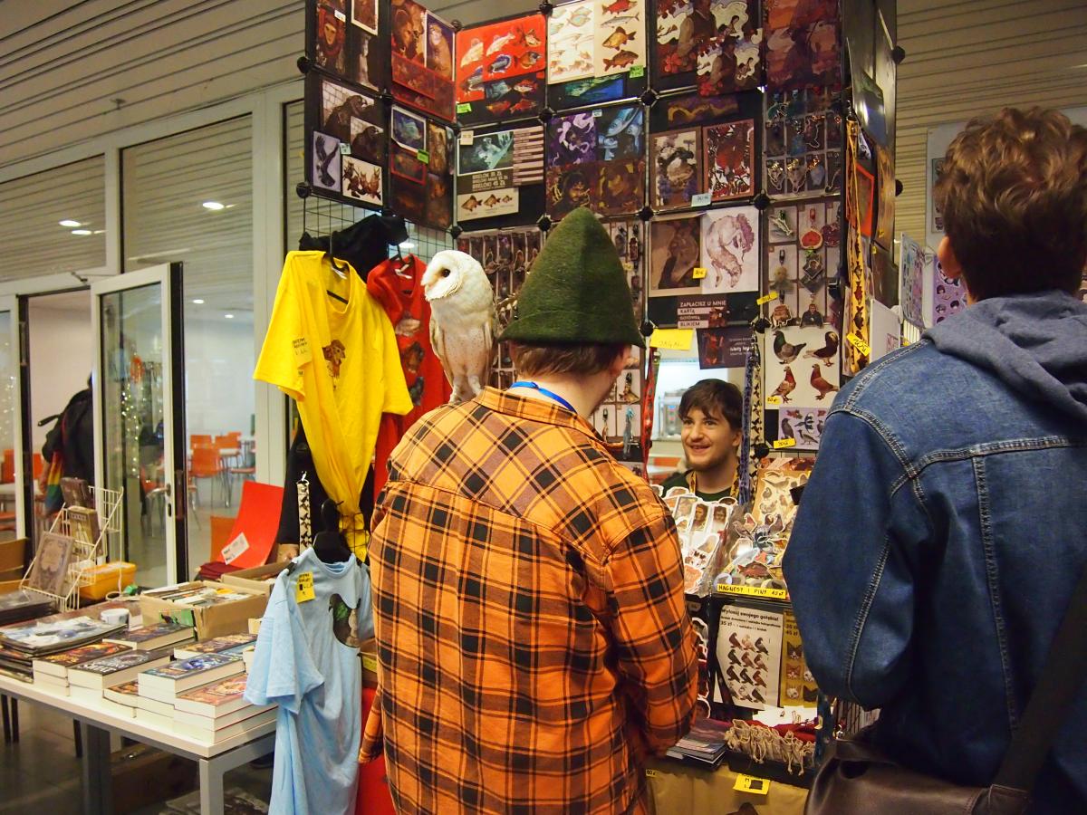 Obok wspomnianego już we wstępie alchemika (Ars Alchemia) wspomnieć należy innych stałych wystawców, którzy towarzyszą eventowi od lat – Szponem i Mieczem. To przy ich stanowisku spędziłem w tym roku najwięcej czasu, oglądając pokazy swobodnych lotów i karmienie ptaków drapieżnych oraz wysłuchując wykładu o szeroko pojętym sokolnictwie. W tym roku odliczyli się oni z rekordową liczbą kilkunastu ptaków, dumnie prezentujących się na polanie obok wydziału. Tuż obok nich znajdowały się obozy rozbite przez grupy rekonstrukcji historycznej GAWRA i Legio XXI Rapax, a także wioska… Mandalorian z grupy Manda’Yaim. I choć brzmi to jak absolutny miszmasz, obok nich znajdował się Wiedźmiński Kasztel. A i to nie koniec atrakcji zewnętrznych.