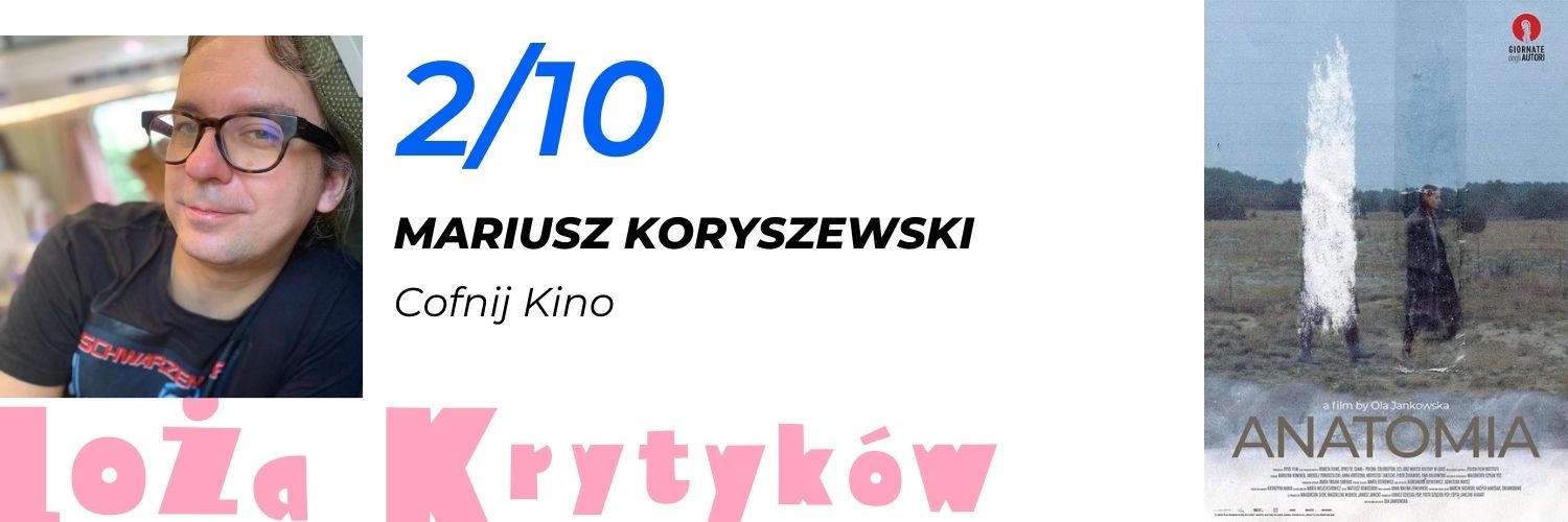 Anatomia jest jak polski przysłowiowy film rodem ze słynnego Rejsu. Bohaterowie patrzą w lewo, patrzą w prawo, patrzą do przodu i nic…. z tego nie wynika. Kamera zachowuje się tak jakby przykleiła się co krzesła albo operator włączył kamerę, zapomniał i poszedł na kawę. Tak jak przez 2 minuty obserwujemy jadącą autobusem po mieście smętną bohaterkę. Najlepsza scena w tym filmie to widok ze szpitala przez okno na las, bo nie ma tam nijakich ludzi – tylko piękno natury. A do tego jeszcze mamy tu jakiś miszmasz w stylu nagrania imprezy rodzinnej ze zjechanego VHS, archiwalne kroniki przemarszów z lat powojennych, a nawet Rota podczas jakiegoś patriotycznego współczesnego marszu… Wygląda to jak jakaś reżyserska wprawka do szkoły filmowej. Na ironię zakrawa fakt, że film jest wyświetlany… w szkole filmowej. ;) Nazwałbym ten film „dramatem”, ale dramatu akurat w tym filmie najbardziej brakuje. I jeszcze ten pretensjonalny tytuł oddający charakter filmu…