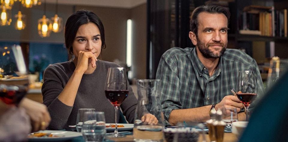 Marcin: W takim razie pierwszy cios wyprowadzę w stronę reżyserii. Śliwa nie miał kompletnie pomysłu na wykorzystanie przestrzeni mieszkania. Przez większość filmu bohaterowie siedzą przy stole, jedzą i rozmawiają. Wszelkie wyjścia do kuchni/na balkon/do łazienki są wprowadzane bardzo mechanicznie, jako pauza między kolejnymi aktami. Rozumiem teatralną konwencję i umowność całej sytuacji, niemniej jednak brakuje mi w tym wszystkim ruchu, jakiejś większej aktywności. Z wyjątkiem krótkiej chwili (wybuchu w sprawie domniemanego homoseksualizmu jednego z bohaterów) narracja prowadzona jest bardzo monotonnie, w jednym tempie, bez jakiegokolwiek przyspieszenia. Gdzież (Nie)znajomym do takiego Parasite’a, w którym Bong po wirtuozersku to zwalniał, to dodawał gazu do dechy. Wszystko w filmie Śliwy jest zrobione po asekurancku, byle trafić do grupy docelowej, niczym spektakl Teatru 6. Piętro, co w tym kontekście jest dla mnie poważnym zarzutem. Tak na marginesie, naprawdę uważasz, że miałkość polskich komedii powinna usprawiedliwiać pobłażliwe ocenianie kolejnych rodzimych produkcji z tego gatunku?