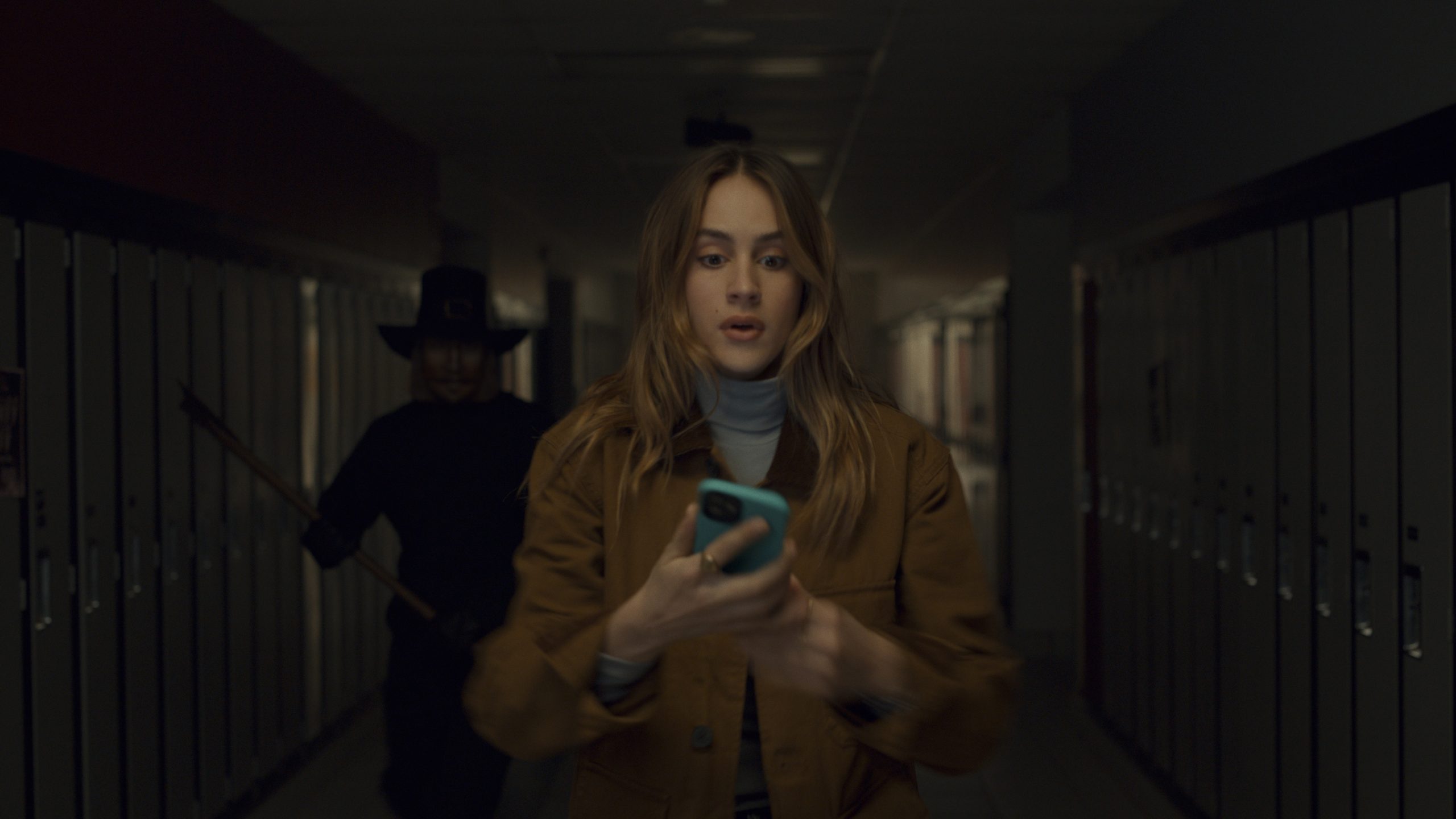 No właśnie, John Carver. Jaki jest zabójca w Nocy Dziękczynienia? Wydaje się być produktem swoich czasów. Potrafi zrobić wrażenie jak Michael Myers, potknąć się jak Ghostface czy rzucić ironicznym żartem godnym Freddy’ego Krugera. Przy tym wszystkim – poza ubiorem – trudno przypisać mu coś charakterystycznego. Dostosowuje się do okoliczności i zmienia plany odnośnie swoich celów, gdy wymaga tego sytuacja. Jeśli coś można wyróżnić w jego przypadku, jak i samym filmie Rotha, to bardzo dobre wykorzystanie mediów społecznościowych. Tajemnicze posty, relacje, streamy – to wszystko ma tu zastosowanie i, mimo pewnej umowności, bardzo dobrze działa w całej historii. A jak wypada paczka nastolatków? Poprawnie. Najbardziej zarysowana jest Jessica (Nell Verlaque), która próbuje sobie ułożyć życie z nowym chłopakiem, ojcem i nielubianą macochą. Jednocześnie stoi w rozkroku, jako jedna z najbardziej uprzywilejowanych osób w mieście, która chciałaby wieść normalne życie niezwiązane z RightMart. A reszta? Większość z nich jest tylko i wyłącznie po to, żeby w mniej lub bardziej efektowny sposób zginąć, a przy tym są slasherowymi archetypami – final girl, porywczy osiłek, czy podejrzany znajomy. Brak tu nazwisk z pierwszych stron gazet, czy portali, a za gwiazdy można uznać uznanego z Suits Ricka Hoffmana w roli Thomasa Wrighta i Patricka Dempseya z Chirurgów w roli szeryfa, próbującego rozwiązać sprawę zabójstw, za którymi stoi zamaskowany pielgrzym.