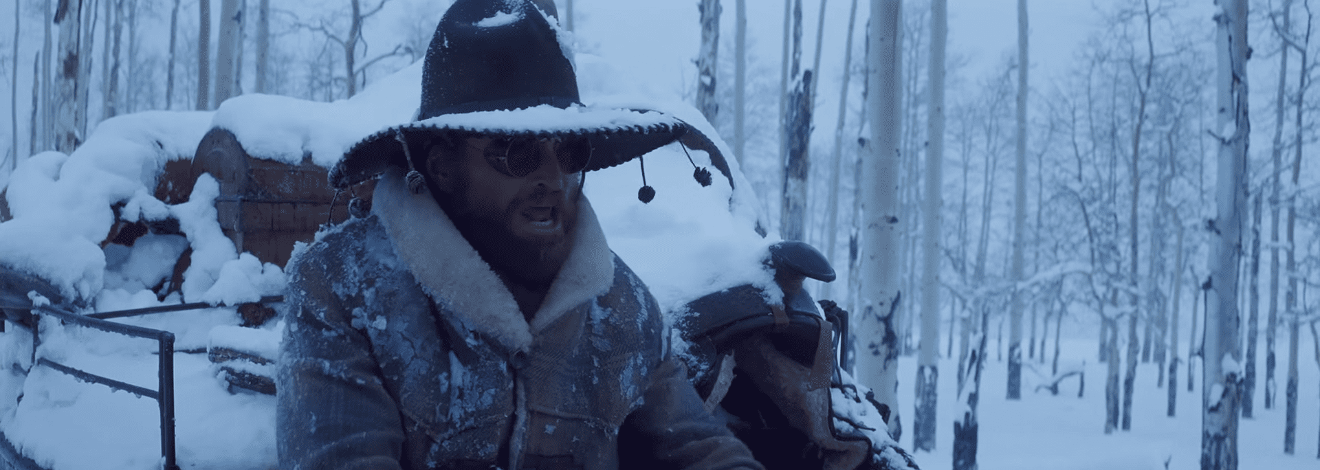Już od pierwszych minut zostajemy powitani mroczną i ciężką muzyką Ennio Morricone, wprowadzającą nas do zimowego świata, który przemierza samotny powóz konny. Początkowa podróż daje nam okazję do zapoznania trojga bohaterów, jednak dopiero po przybyciu do stojącej w środku zamieci chaty, w której skrywa się ośmioro ludzi, rozpoczyna się właściwy film.