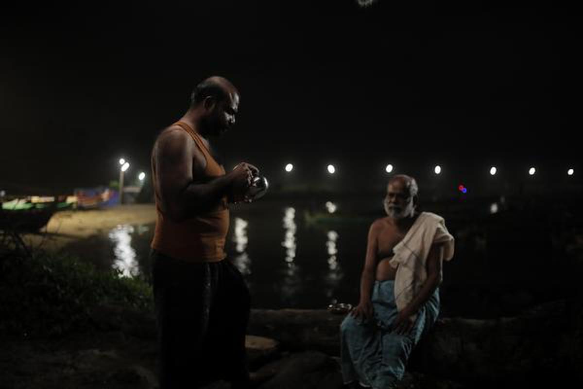 Co najbardziej imponuje w filmie Pellissery’ego, to jego zdolność do przedstawienia kontrolowanego chaosu na ekranie. Leje się deszcz, ktoś krzyczy, kto inny gra na klarnecie, a nagle na stypie zjawia się nieznana część rodziny, co wywołuje totalne zamieszanie wśród bliskich Eeshiego oraz lokalnych mieszkańców. Szarpanina, wzajemne wyzwiska i do tego pojawiający się wikariusz, wprowadzający jeszcze więcej zamętu. Chociaż dzieję się wiele rzeczy na raz z udziałem wielu postaci, to nie ma się poczucia przytłoczenia oraz zagubienia w całym tym bałaganie, który odbywa się pod domem zmarłego. Przy napędzającej się spirali irracjonalnych sytuacji nie brakuje jednak momentów oddechu, które wprowadzają w szczególności piękne nocne zdjęcia nadmorskich plenerów w obiektywie kamery Shyjuiego Khalida. Przy tym świetnie spisuje się obsada złożona z kilku zawodowych aktorów oraz naturszczyków – mieszkańców wioski, w której dzieje się akcja filmu. Gwarantuję, że bez sprawdzenia nie sposób odgadnąć, kto jest faktycznie po szkole aktorskiej, a kto na co dzień trudzi się chociażby rybołówstwem. Króluje w tym Chemban Vinod Jose w roli Eeshiego, sprzedając nam początkowe zagubienie oraz żal, przez rosnącą irytację, wściekłość, aż po finałową szarżę w błocie i strugach lejącego deszczu. Chociaż samo rozwiązanie kwestii pogrzebowej jest dosyć przewidywalne i może nie do końca satysfakcjonujące, to w tle wiele wynagradzają odniesienia do problemów z alkoholem wśród grona mężczyzn, kłopotów z niepoważnymi służbami lekceważącymi śmierć jednego z mieszkańców, podziałami społecznymi między rodzinami czy podstępnym księdzem, który ma największy posłuch w całej społeczności.